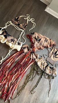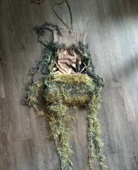 HAND DYED/BLEACHED WEED TEES REWORKED WITH CROCHET, KNITTING, AND SEWING