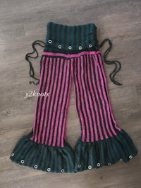 size XS-S, leg length is 27 inches. purple yarn is hand dyed